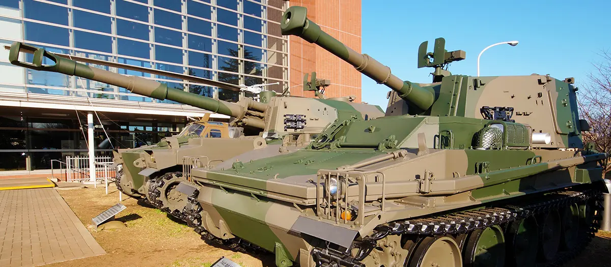 The JGSDF (Japan Ground Self-Defense Force) Public Information Center hosts helicopters, tanks, missiles, and other military equipment.