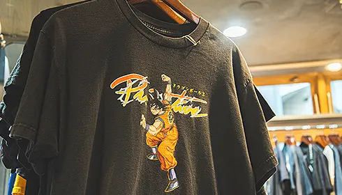 The clothing selection skews toward casual street fashions with an emphasis on men's wear. Lovers of subculture will appreciate affordable T-shirts printed with popular band names, anime characters, and movie titles. Upstairs, you'll find polo shirts, jeans, and more graphic tees. The staff is well-versed in vintage and can introduce you to authentic retro treasures such as an Adidas track jacket made in France in the 1970s.