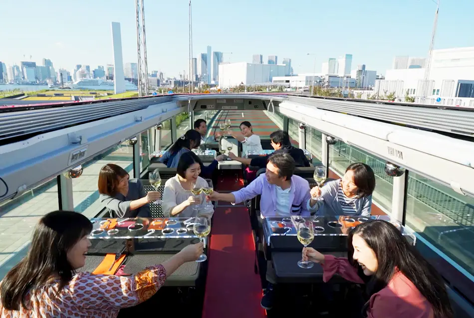 This bus turns the entire city into your restaurant, offering a leisurely meal while viewing the famous sights of Tokyo, including Tokyo Tower, Rainbow Bridge, Odaiba, and Ginza. There are lunch and dinner options, with a choice of a seasonal menu of Japanese or European cuisine, and tables for up to 24 or 25 people. The transparent roof can be closed on rainy days, so you can enjoy your trip whatever the weather.