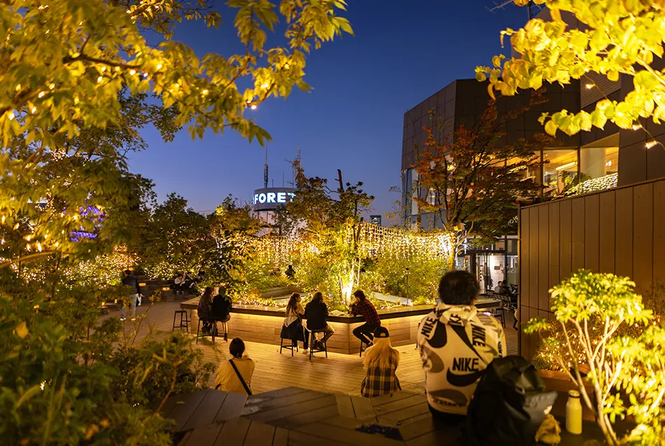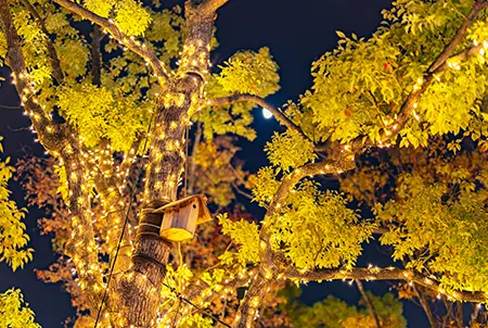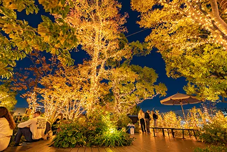 The OMOHARA Christmas Illumination is held on the rooftop garden of Tokyu Plaza Omotesando “Omokado”. During this event, the green space transforms into an enchanting forest blessed with sparkling shooting stars. The warm glow of approximately 20,000 LEDs coupled with the cute animal and leaf motifs create a cozy outdoor setting that chases away the cold. The public rooftop is open to everyone and serves as a festive place to rest between shops. Purchase a warm beverage from one of the mall’s cafes and relax in the romantic setting. Don’t forget to admire elevated views of Shibuya’s shimmering nightscape as well.