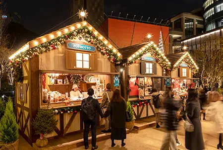 AZABUDAI HILLS CHRISTMAS MARKET brings Christmas energy into the heart of the city. Located in Azabudai Hills’ Central Green area, this picturesque market is home to five retail and 12 food establishments housed in quaint European-esque stalls. Here, you can savor food and beverages under The Cloud’s elegant lighting and even shop at some exclusive stores, such as the world-famous German shop, Käthe Wohlfahrt. At the market’s center stands an eye-catching Christmas tree adorned with five different types of lighting. Santa will also make an appearance on December 25 for meet-and greet sessions.