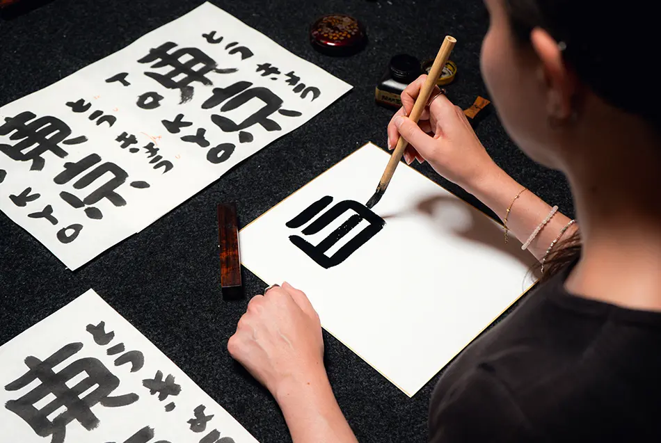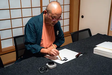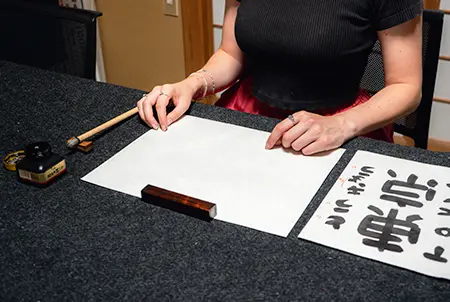 Writing is a part of daily life, whether it be typing an email or jotting down a grocery list. You often do it without thinking. Udoyoshi Calligraphy Class turns your attention back to the act of writing, rather than its meaning. This calligraphy course teaches Gendaibun no Wayoh (Modern Japanese Wayoh), a type of calligraphy that focuses on modern Japanese script instead of traditional Chinese kaisho—square style—characters. After choosing your desired words, the teacher provides a writing demonstration. Then, it is your turn. As you glide the ink across the white paper, your concentration and senses will sharpen, and you will notice self-expression in every stroke. Your teacher’s gentle guidance will help you experience mindfulness through calligraphy.