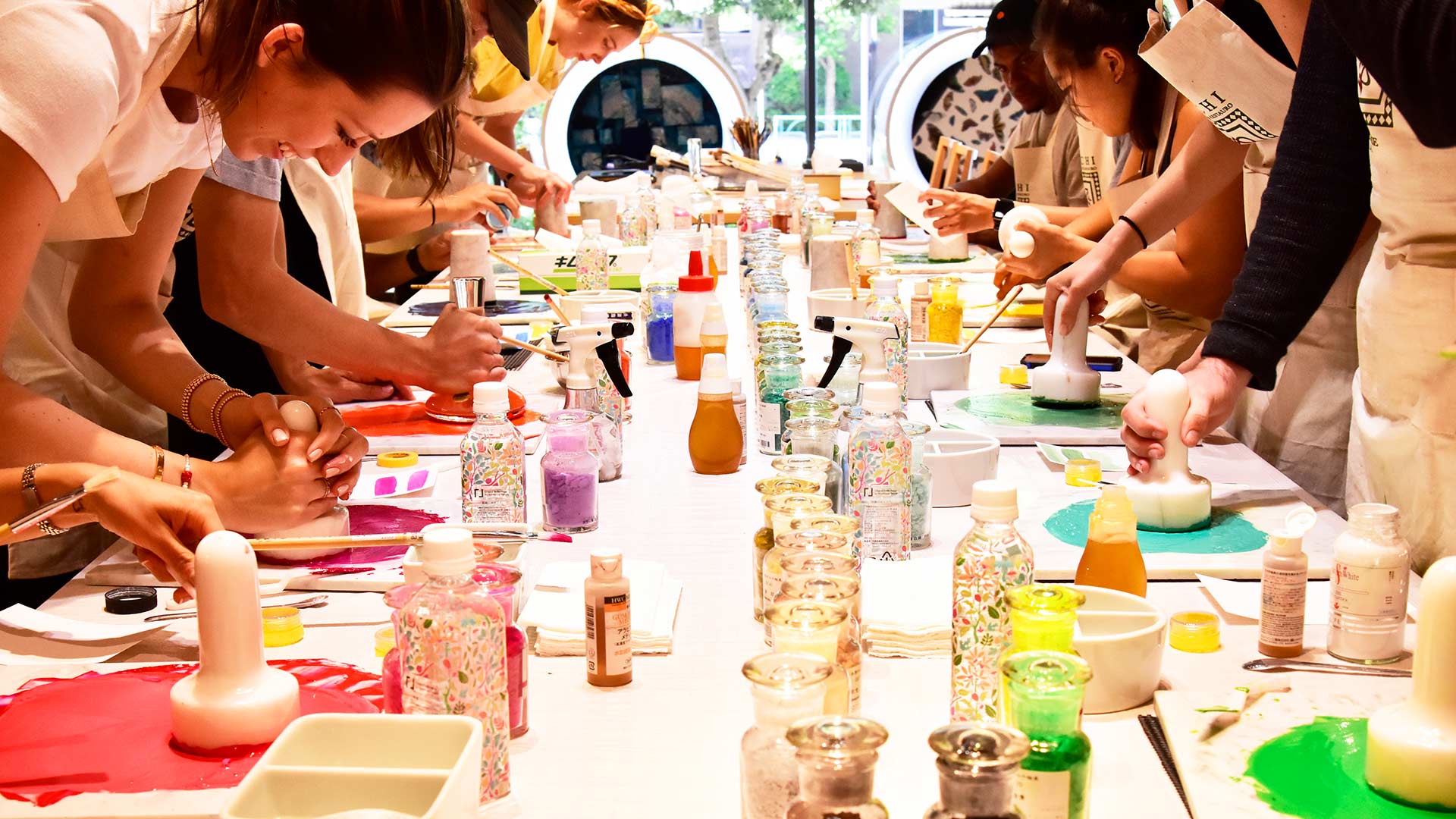 PIGMENT TOKYO, a multifaceted art facility on Shinagawa's artsy Tennozu Isle, provides in-depth workshops, mainly on Sunday afternoons. (Check the official website for event dates.) Create unique colors, learn about pigments and dive into the world of metal leaf under the careful instruction of the lab's instructors, who are experienced artists keen to share their skills. Please contact the facility to inquire about English-language support.