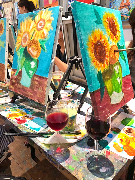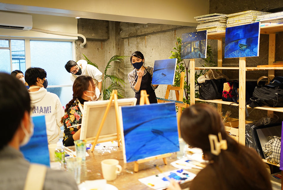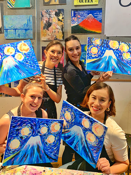 Artwine Tokyo provides a no-fail art experience, with skilled instructors providing careful explanations and creating drafts to help guide participants through more difficult projects. In addition, wines are chosen to compliment the spotlighted artist's life and character and the chosen painting's imagery. The multisensory encounter with art creates deep and meaningful Tokyo memories. English programs are available.