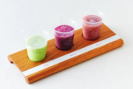 Customers can enjoy not just the seasonal fruit itself, but also the juices, smoothies and sweets that can be made from it. You can also order a drink comparison “flight”, which allows you to compare the tastes, colors and aromas of the three varieties of seasonal fruit.