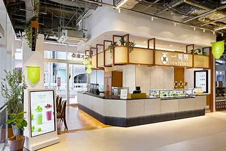 Ichicabo’s menu changes with the season. They select one seasonal fruit - such as kiwi, mango, cherry, or watermelon - and offer three varieties from Japan and around the world that demonstrate the sweetness and flavor of naturally ripe fruit. The signs and lighting of the store change color depending on the seasonal fruit.