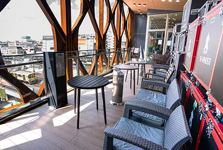 ASH WINDER Esports ARENA, located in Shinjuku City, is a massive 24-hour, 600-square meter esports facility, making it one of the largest esports facilities in Japan. The five-meter-high ceilings and open space ensure that you have plenty of room to enjoy your favorite games. It has a spacious 80-seat PC area with five-meter-high ceilings where you can game to your heart’s content, as well as a studio that supports live broadcasts of esport tournaments. There is also an outdoor terrace where you can take refreshing breaks between sessions. These human touches—the spacious interior and access to the outdoors—paired with the facility’s high-quality gaming opportunities create an empowering atmosphere where you feel inspired to embark on your own esports journey.