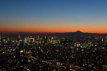 Catch sight of Mt. Fuji on clear days from the tower's two observation decks, the Tembo Deck at 350 meters and the Tembo Galleria at 450 meters. A real treat is seeing Diamond Fuji, which is when the sun sets over Mt. Fuji’s summit. Aim for around November 6 to 8 and February 3 to 5 to witness this special sunset.