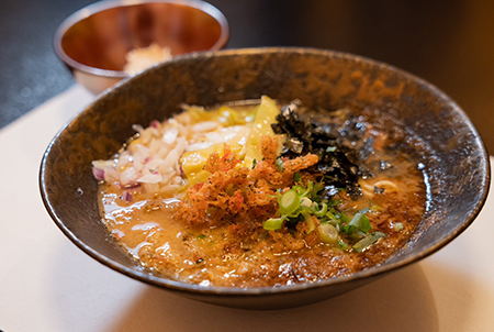 In April 2023, a new ramen restaurant, Hakata Ittaiichi, opened in Gotanda. The chef is Goji Kawarabata, the owner of the famous “Kappo Ajimi” restaurant in the busy district of Nakasu, Fukuoka. After years of hard work, he earned a Michelin star and now you can enjoy his famous “sea bream fish bone ramen” in Tokyo. With a deep and rich umami flavor, this ramen has a signature cloudy soup made from boiling the heads and bones of sea bream, which is known as the “king of fish” in Japan.