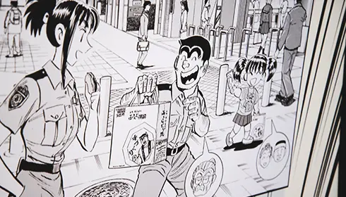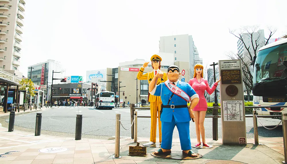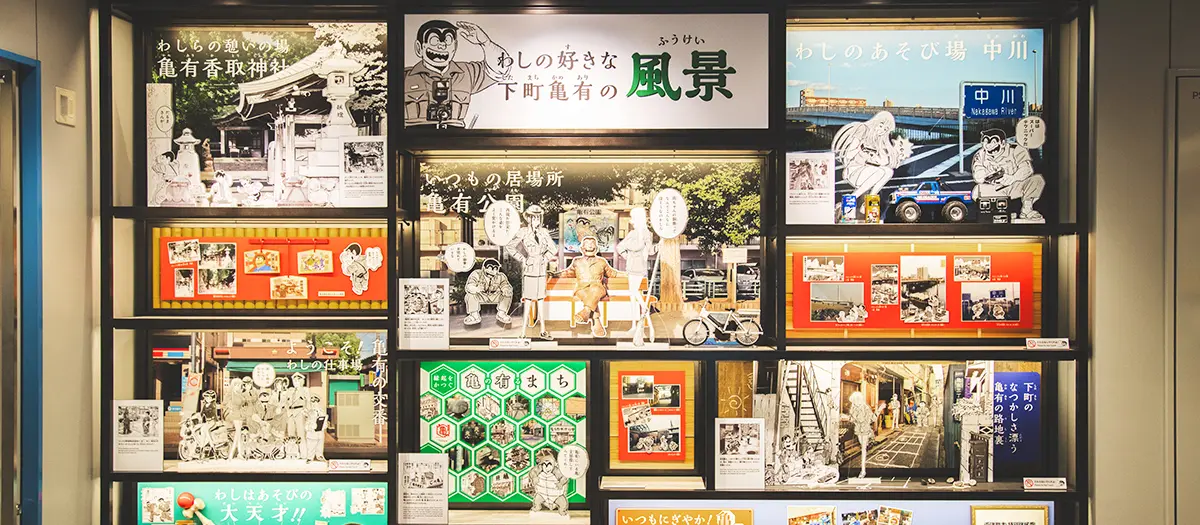Kochikame is a police comedy manga that was serialized in "Weekly Shonen Jump" for 40 years and is well-known for its colorful characters and gag-based humor. Because of Kochikame's enduring popularity, Kameari has become a destination for fans who want to visit the locations depicted in the series. The neighborhood is home to Kochikame Museum, opened March 2025; a popular confectionery store that appears in the pages of Kochikame; and manhole covers and statues that feature the manga characters.