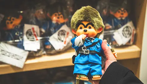 Finally, the ground floor is a community space that displays Kochikame panels featuring local spots such as Kameari Park, Kameari Katori Jinja, and Nakagawa River. You can use these for reference for where in Kameari to visit. There's also a museum shop that sells goods such as stuffed animal Monchhichi with Ryo-san's trademark thick unibrow.