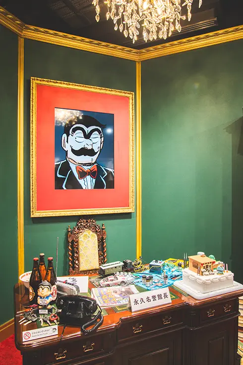 Kochikame Museum, which opened in March 2025, displays materials related to this beloved series. The museum is designed as if Ryo-san decided to build a museum in his own honor on top of the police station where he works. The building's entrance is a recreation of the series' police station, and signs throughout the floors depict Ryo-san running away from his superior officer. This fun, quirky design immerses visitors in the world of Kochikame and its main character.