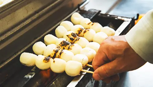 While roasting dango, Sato talks to customers from around the world and shares stories about the manga and the neighborhood. There's a cafe inside the store, so you can sit down and relax. It's the perfect place to visit for delicious confections and travel stories.