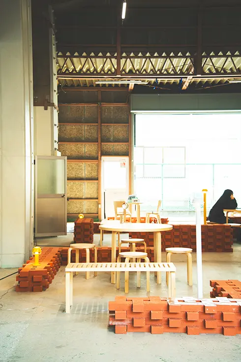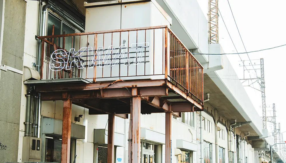 In August 2023, SKWAT established SKAC and moved its base there from Aoyama to bring new artistic and cultural value to Kameari, which doesn't have Aoyama's established arts scene. The shops in SKAC serve as warehouses and stores for managing inventory that also welcome customers. They utilize construction materials and other reused items in artistic ways, as designed by Daikei Mills.
