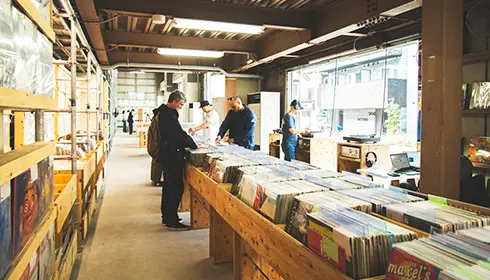 Within SKAC, you'll find a record store, Vinyl Delivery Service (VDS), with around 8,000 records for sale in-store. There are sections for recommended records and artistic displays of records only available for purchase online. The owner first opened a store in London because of the local music scene and sold Japanese records there. Now, he buys records in any genre and decides whether to sell them in the London or Kameari location.