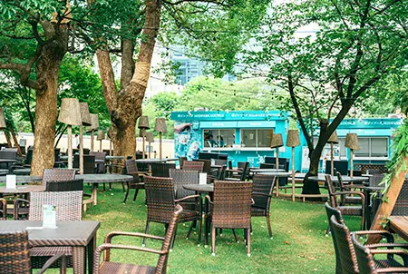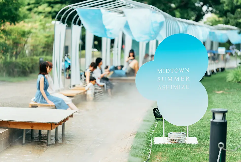During summer in Tokyo, many popular tourist attractions install misting machines to help cool down visitors outside. Similarly, Tokyo Midtown is hosting “MIDTOWN SUMMER 2024” from July 12 to August 25 to provide guests a refreshing outdoor destination where they can enjoy ecological coolness. Predominantly located in Midtown Garden, this event has two outdoor attractions—Sui Gin Soda MIDPARK LOUNGE, an open-air dining space with refreshing beverages and dishes where you can feel the coolness of summer under the trees, and ASHIMIZU, an area where you can dip your feet in an icy stream and bask in evening coolness. ASHIMIZU receives fresh ice daily at 15:30 and 17:00, produces mist from 15:00–21:00, and has additional special effects that allow you to further feel the coolness of summer. In the evenings, from 18:00–21:00, the area becomes aglow with cool-toned lighting. It is the perfect place to unwind and recharge.