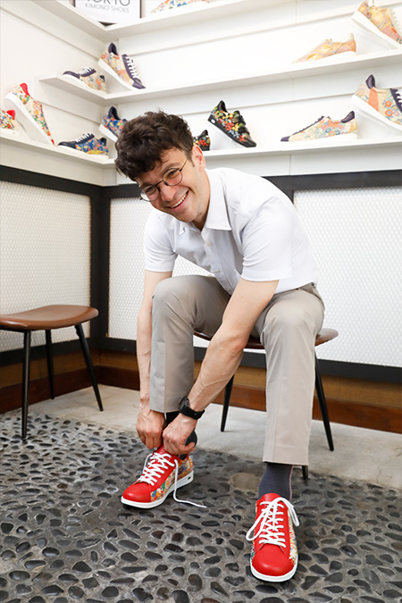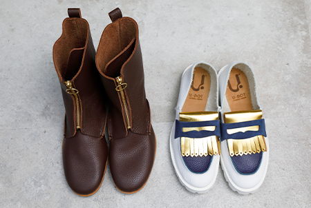 U-DOT offers unique, unconventional shoes that allow customers to express their personality. There are many styles available, from fringe loafers to sports sandals with Vibram soles. At the showroom, customers can customize their shoes with a variety of materials and colors to design a custom pair of shoes to their liking. Each shoe is entirely handmade, cutting a single piece of leather to ensure quality and consistency. U-DOT has a wide range of clients, including the viral J-rock band, YOASOBI, who had multiple pairs made to match outfits they wore on stage.