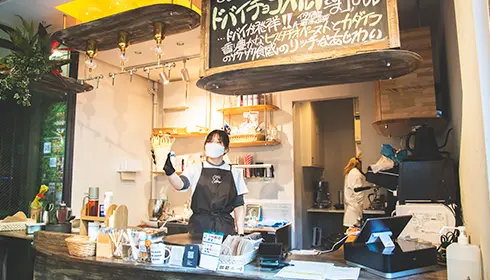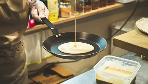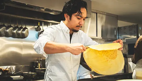 Tomono says he originally planned to open a French pastry shop that also sold crepes. But after testing his recipes and trying different ideas, he was able to make particularly delicious crepes. So he decided to open a crepe shop instead. He puts his pastry-making skills to use by making beautiful crepes that combine the features of desserts such as baked goods and parfaits.