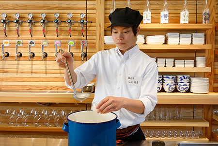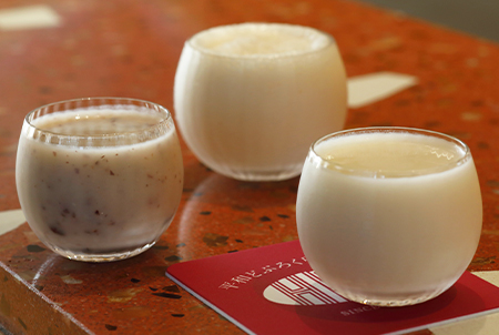 Heiwa Doburoku Kabutocho Brewery, a sake brewery opened in 2022 and situated on the first floor of the elegant hybrid timber Kitoki building, serves a real treat: doburoku, an unpressed, slightly fizzy sake. Around 10 flavors made in soup pots are on offer each day at this Tokyo brewery-pub, with standard varieties such as plain, hops and azuki served alongside special and seasonal varieties like mikan orange and basil. Choose the smaller 70mL serving size to facilitate sampling several flavors.