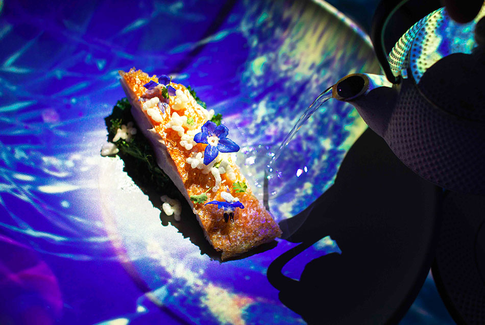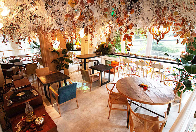 NAKED, INC., a digital art collective known for its work at Kyoto's Nijo Castle and Tokyo's Kanda Shrine, used its expertise to create this cafe combining art and food. Forest-like decorations mirror the seasons, creating a delightful setting in which to enjoy healthy meals. (Takeout okay.) Dinnertime involves VR, projection mapping and music. Indeed, meals turned artwork with projection mapping are a sight to see.