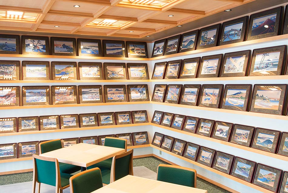 This Ryogoku-area cafe, a modern take on an old-Tokyo teahouse, fuses old with new and art with dining by decorating its interior with Jacquard-woven versions of Hokusai’s Thirty-Six Views of Mount Fuji ukiyo-e (woodblock) prints. The cafe both exhibits and sells art, so you can leave lunch with unique Tokyo souvenirs.