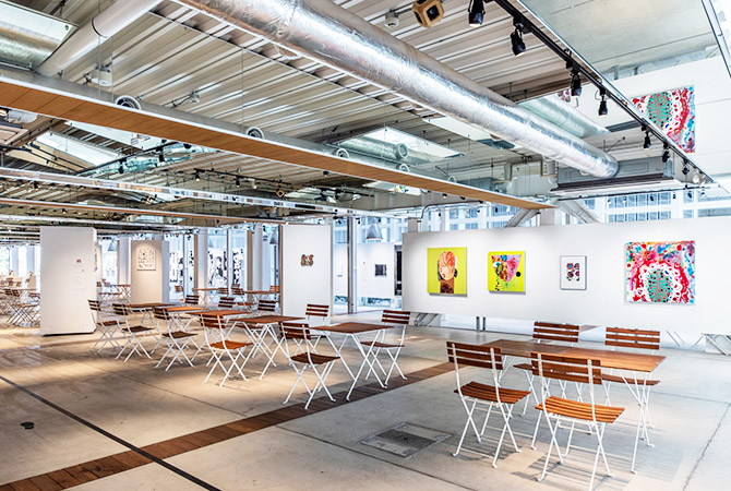 Savor healthy meals surrounded by art on Tokyo’s Tennozu Isle. The expansive gallery space showcases up-and-coming artists in Japan. Works on display—available for purchase—are constantly updated, so there’s always something new to enjoy.