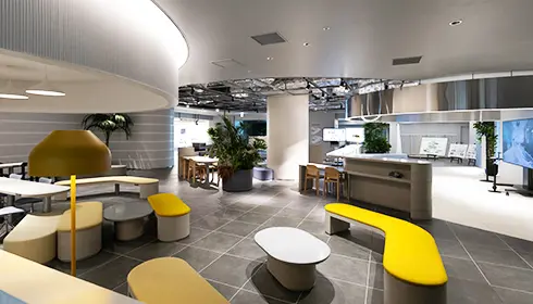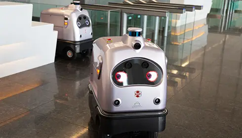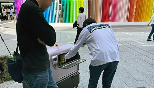 Takanawa Gateway City is home to Takanawa Gateway Link Scholars' Hub, or LiSH, which aims to realize a future where everyone lives happily and people coexist with robots. Along with the platform-like vehicles, there are robots throughout the complex. People with the Takanawa Gateway City app can buy drinks online that are delivered by robots to designated locations in Gateway Park. Security and cleaning robots are also used in the buildings' office spaces. These service robots give Takanawa Gateway City a futuristic feel and provide an image of a future where robots assist people with their daily lives.
