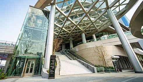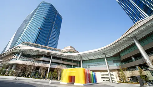 Takanawa Gateway City is built above and around Takanawa Gateway Station, which opened in 2020 as the newest train station on the popular JR Yamanote Line. The Yamanote Line travels in a circle through some of Tokyo's most popular areas, such as Shinjuku, Shibuya, and Harajuku. Takanawa Gateway Station sits one stop away from the transportation hub of Shinagawa Station and is close to Haneda Airport. Takanawa Gateway City is home to shopping facilities, a convention center, a hotel, and a wide range of event spaces.