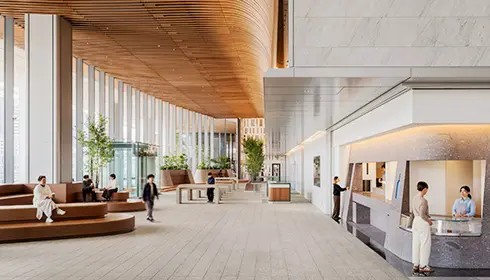 March marked the opening of part of two interconnected buildings, together known as The Linkpillar 1. The other three buildings in the Takanawa Gateway City complex will be The Linkpillar 2, consisting of office floors, clinics, and commercial facilities; MoN Takanawa: The Museum of Narratives, a cultural facility with performance spaces and exhibition halls; and Takanawa Gateway City Residence, a combination of residential units on the upper floors and an international school on the lower floors. These buildings are expected to open in early 2026.
