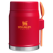 This on-the-road or at-the-campsite food jar has all the bells and whistles. Compact—but with plenty of room for your favorite hot or cold recipe. An insulated lid with a pressure-release valve for easy opening. And last but not least. a stainless-steel spork that fits securely into the attached bracket on the side. Bon appetite!